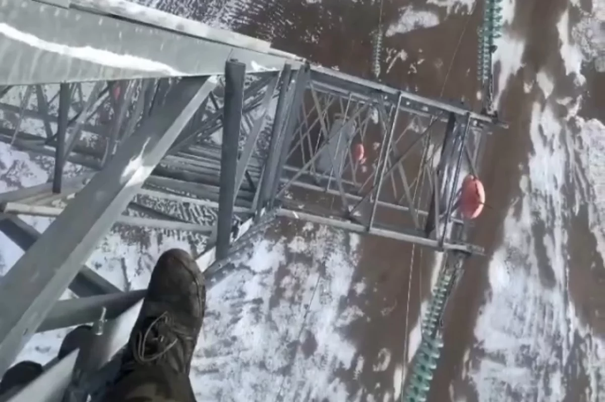 Молодой специалист, расположившись на вершине опоры высотой 40 метров, под порывами ветра до 12 метров в секунду, весело делится впечатлениями о своей профессии. Он показывает захватывающие виды, открывающиеся с такой высоты, и с оптимизмом говорит о буднях энергетиков, которые часто сопряжены с риском.